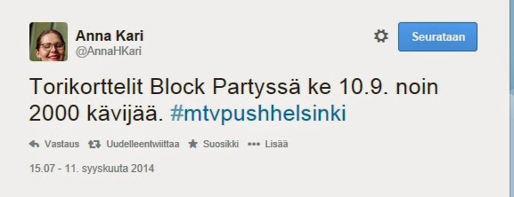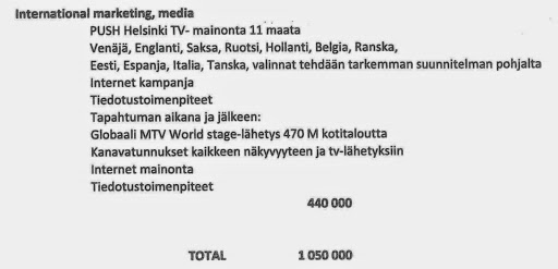 Verna Vuoripuron kirjoittamassa artikkelissa paljastettiin, että Helsingin kaupunki aikoo todellakin käyttää 637 500 euroa kansainvälisen MTV-musiikkikanavan Push Helsinki 2014 -tapahtuman järjestelyihin. Tapahtuman kokonaiskustannukset ovat 850 000 euroa.